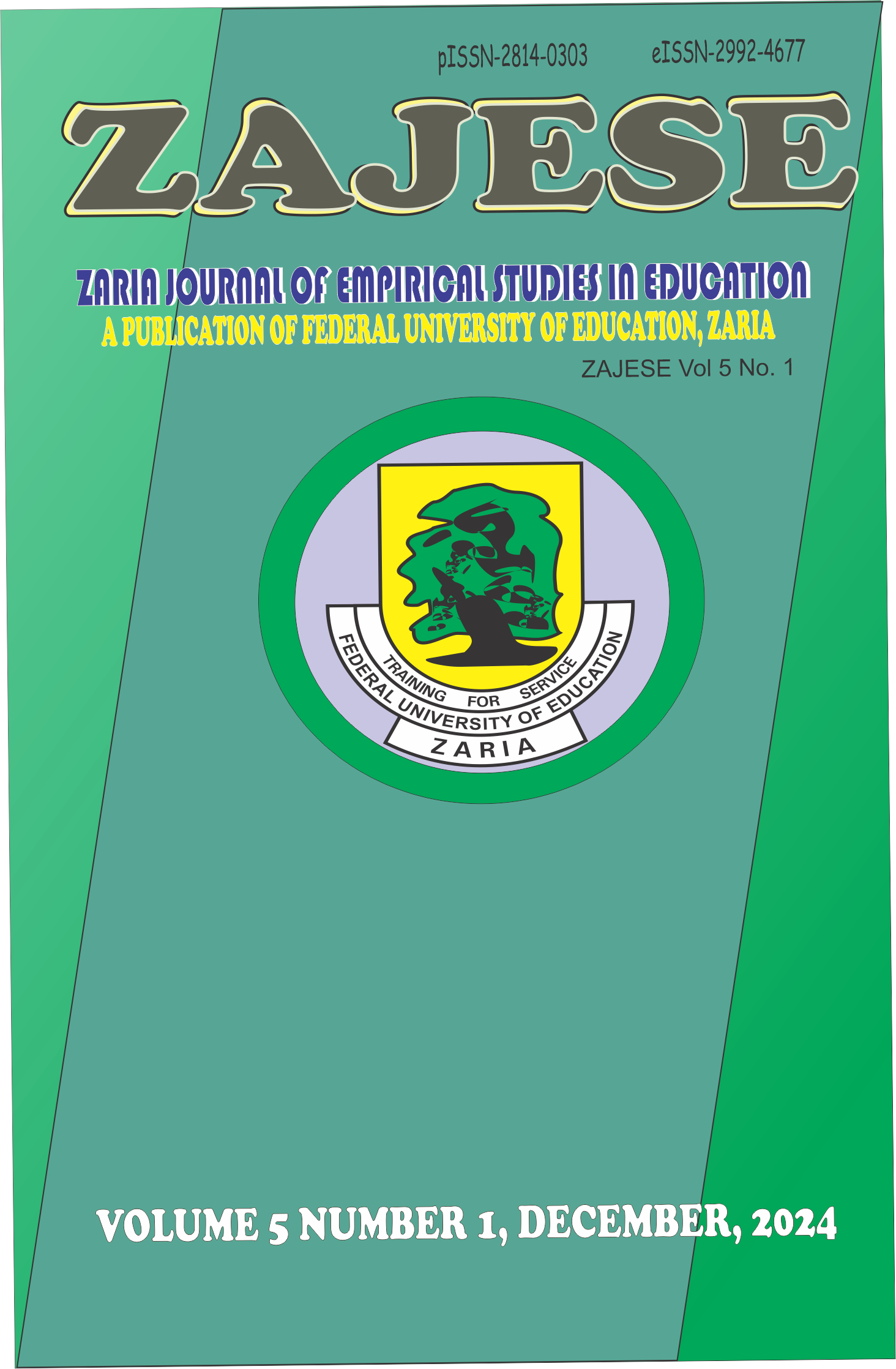 Welcome to the maiden issue of the Zaria Journal of Empirical Studies in Education (ZAJESE). The journal is a publication of the Federal University of Education, Zaria, focusing on experimental research, correlational research, longitudinal study, causal-comparative research, etc. The journal is a response to the challenge and has toe the path of empirical research to meet the challenges posed by the virtual revolution in pedagogy with pro-active, holistic, and multidisciplinary approaches.