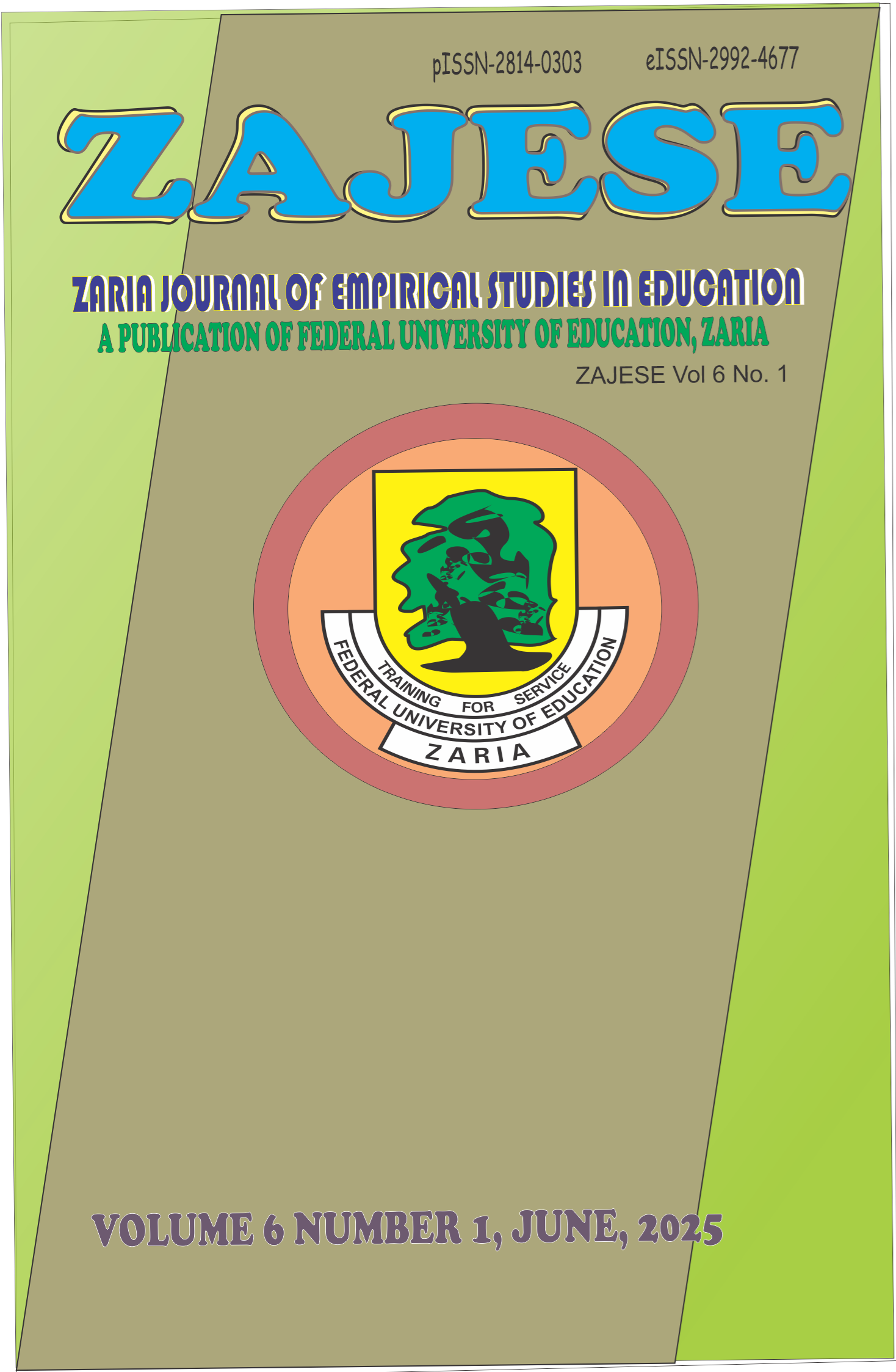 Welcome to the maiden issue of the Zaria Journal of Empirical Studies in Education (ZAJESE). The journal is a publication of the Federal University of Education, Zaria, focusing on experimental research, correlational research, longitudinal study, causal-comparative research, etc. The journal is a response to the challenge and has toe the path of empirical research to meet the challenges posed by the virtual revolution in pedagogy with pro-active, holistic, and multidisciplinary approaches.